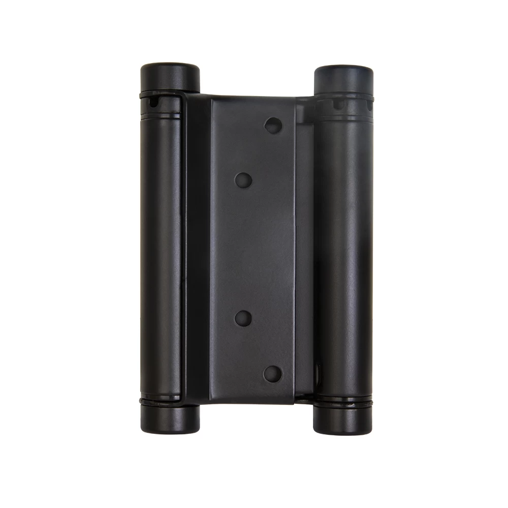 Петля двусторонняя (она же барная, пружинная, петля метро) применяется для деревянных дверей. Позволяет двери открываться в обе стороны, возвращает дверь в центральное положение (в створ). Втулки петель выполнены из техно-полимера, обеспечивают амортизацию, гарантируют тихую и плавную работу, увеличивают срок службы более 200 000 циклов. Специальный тормоз замедляет движение двери и уменьшает количество колебаний, это дает возможность использовать двери большего веса и размера. В комплекте с петлями идут полимерные пластины, облегчающие установку и гарантирующие надежное крепление.