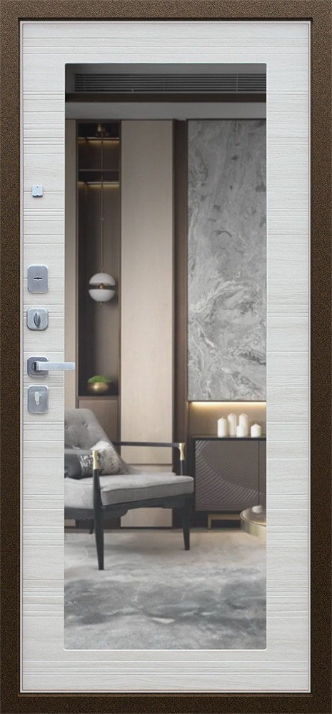 Надежная входная Дверь Спартак с зеркалом Акация Светлая Поперечная премиум класса по цене 36 235 руб. Большая толщина стали защитит от проникновения в ваш дом, квартиру или коттедж. Используется очень качественная фурнитура: замки, цилиндры, ручки, защелки. Покрытие и отделка двери изготовлено под внимательным контролем производителя. Дверь имеет долгий срок службы и гарантию.