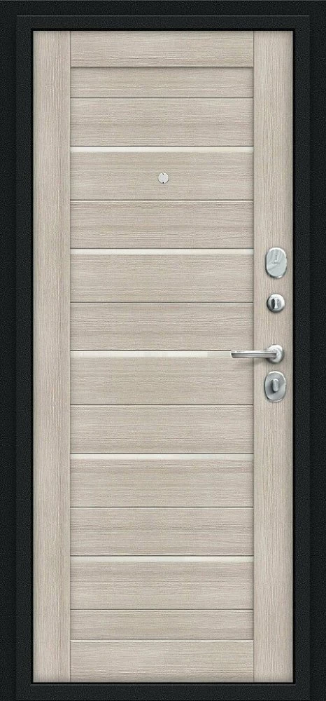 Надежная входная Браво Техно Kale Букле черное/Cappuccino Veralinga премиум класса по цене 33 985 руб. Большая толщина стали защитит от проникновения в ваш дом, квартиру или коттедж. Используется очень качественная фурнитура: замки, цилиндры, ручки, защелки. Покрытие и отделка двери изготовлено под внимательным контролем производителя. Дверь имеет долгий срок службы и гарантию.