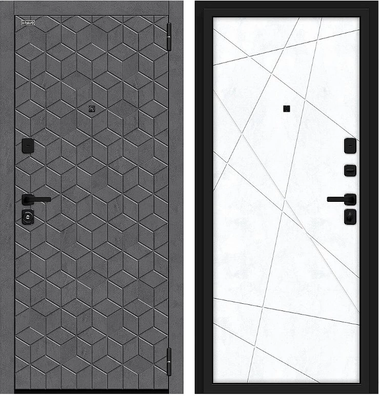 Надежная входная Дверь Браво Кьюб/SBlack Slate Art/Snow Art премиум класса по цене 39 085 руб. Большая толщина стали защитит от проникновения в ваш дом, квартиру или коттедж. Используется очень качественная фурнитура: замки, цилиндры, ручки, защелки. Покрытие и отделка двери изготовлено под внимательным контролем производителя. Дверь имеет долгий срок службы и гарантию.