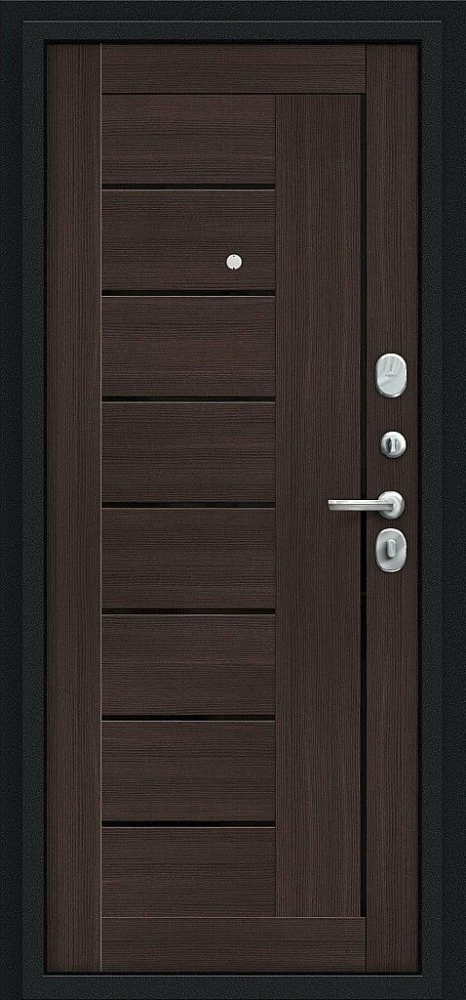 Надежная входная Дверь Браво Проф Букле черное/Wenge Veralinga премиум класса по цене 32 685 руб. Большая толщина стали защитит от проникновения в ваш дом, квартиру или коттедж. Используется очень качественная фурнитура: замки, цилиндры, ручки, защелки. Покрытие и отделка двери изготовлено под внимательным контролем производителя. Дверь имеет долгий срок службы и гарантию.