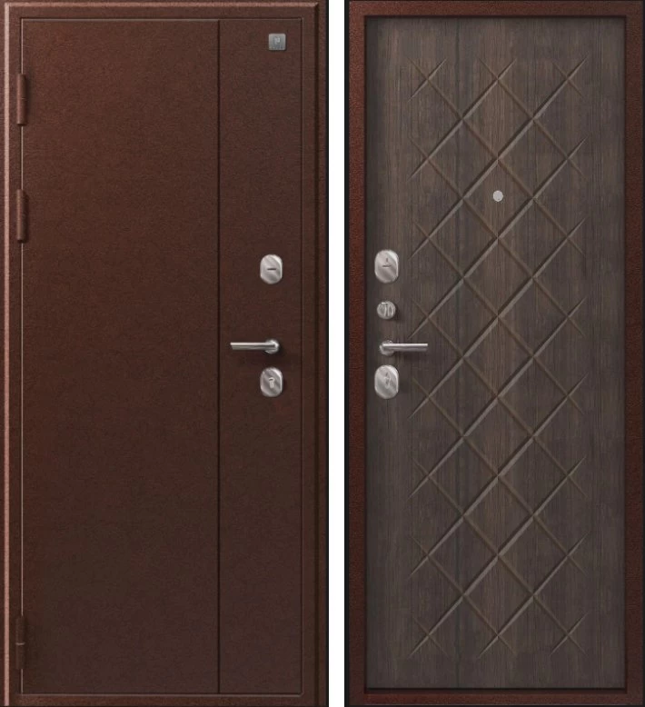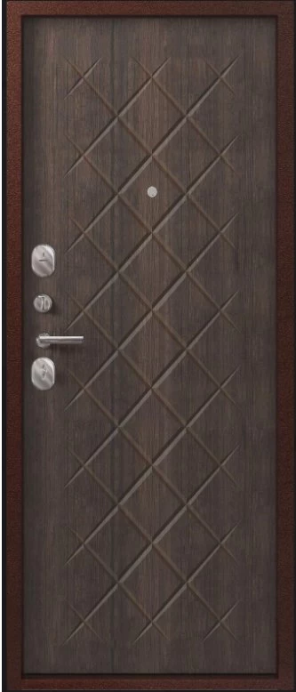 Надежная входная Дверь V-02 медь антик - венге премиум класса по цене 36 585 руб. Большая толщина стали защитит от проникновения в ваш дом, квартиру или коттедж. Используется очень качественная фурнитура: замки, цилиндры, ручки, защелки. Покрытие и отделка двери изготовлено под внимательным контролем производителя. Дверь имеет долгий срок службы и гарантию.