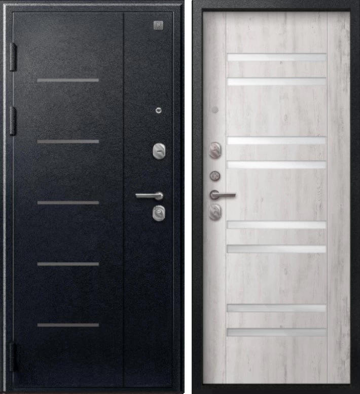 Надежная входная Дверь V-07 Черный муар - Дуб пепельный премиум класса по цене 41 735 руб. Большая толщина стали защитит от проникновения в ваш дом, квартиру или коттедж. Используется очень качественная фурнитура: замки, цилиндры, ручки, защелки. Покрытие и отделка двери изготовлено под внимательным контролем производителя. Дверь имеет долгий срок службы и гарантию.