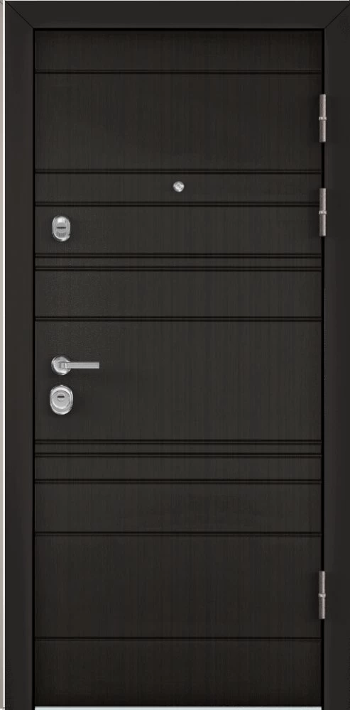Надежная входная Дверь Цербер 3К(Чёрная) Горизонт Венге(Сменная панель) премиум класса по цене 42 235 руб. Большая толщина стали защитит от проникновения в ваш дом, квартиру или коттедж. Используется очень качественная фурнитура: замки, цилиндры, ручки, защелки. Покрытие и отделка двери изготовлено под внимательным контролем производителя. Дверь имеет долгий срок службы и гарантию.